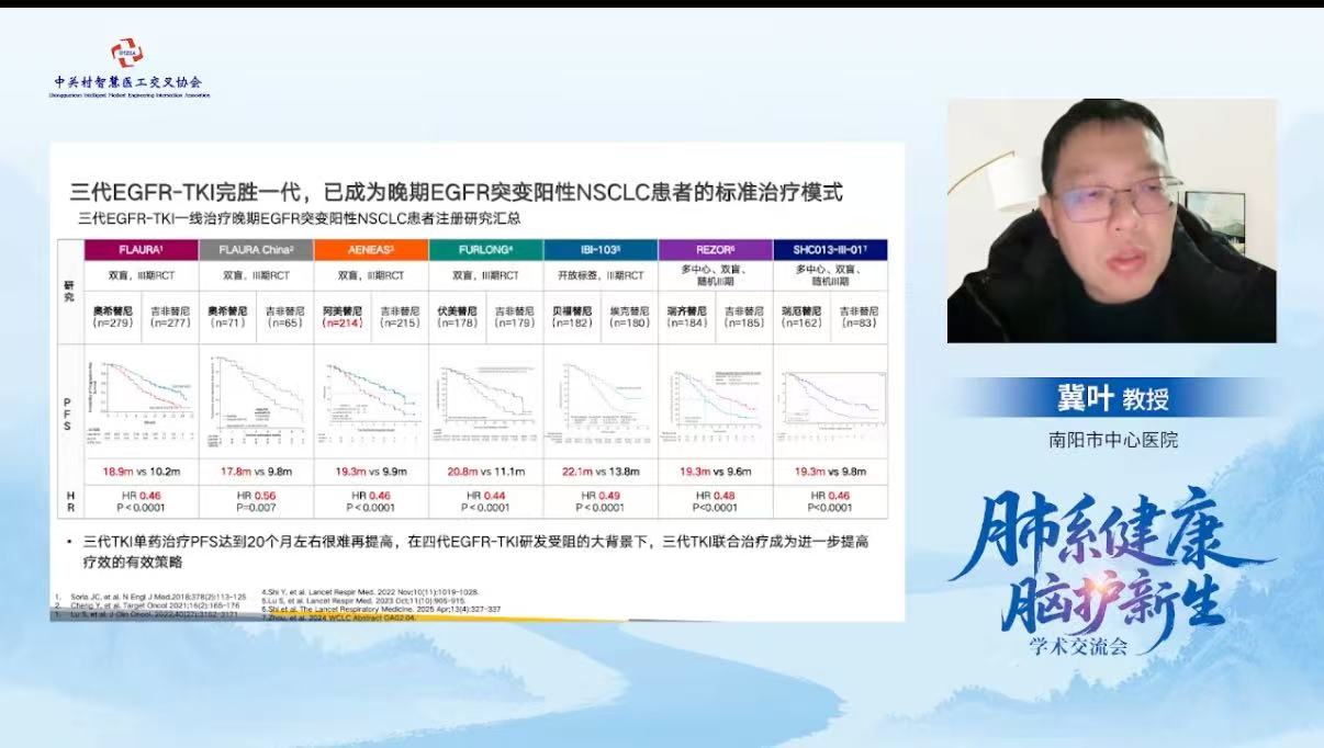 南阳市中心医院冀叶教授则再次聚焦《AENEAS2:引领中国 EGFR 阳性 NSCLC 晚期一线靶化联合治疗新格局》,结合基层案例说明: