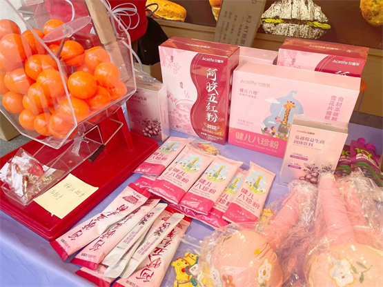 活动现场,安喜莱展区以鲜明的国潮风格与健康主题吸引众多市民驻足。品牌不仅展示了蔓越莓益生菌、五红粉、健儿八珍粉等多款核心产品,更通过互动体验与专业讲解,让“内养”理念变得可知、可感、可践行。