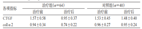 表3 2组治疗前后CTGF及collα2 mRNA的比较